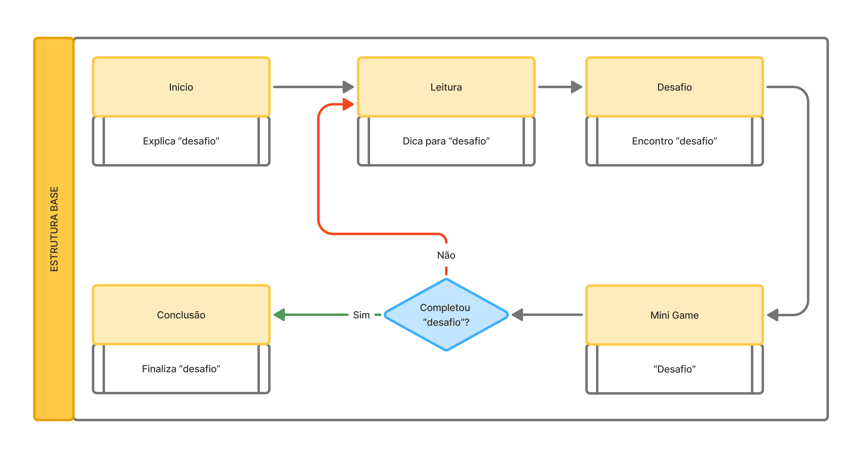 Reestruturação de progressão, loops centrais e interações do jogo.